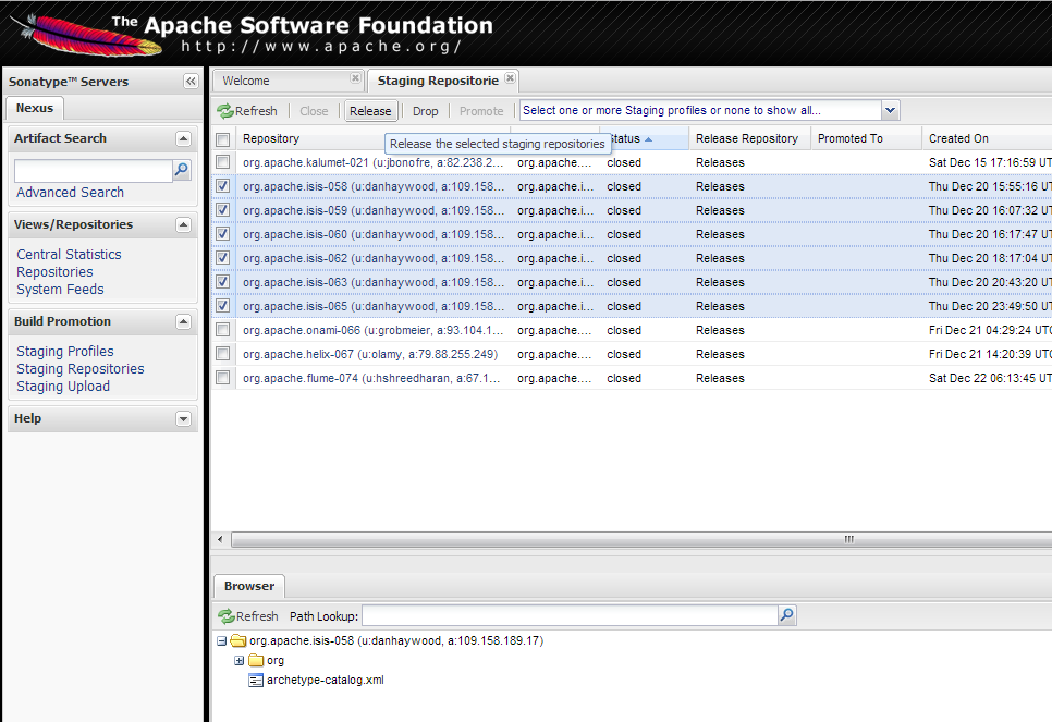 This section details the process for formally releasing Isis modules. It describes the process for both core and then the archetype. The subsequent sections describe how other committers can verify a release and how the release manager can then perform post-release activities and set up for the next development iteration.