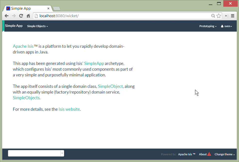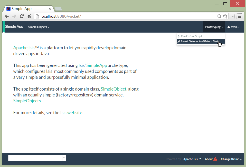 Navigate to the Wicket UI (eg http://localhost:8080/wicket), and login (sven/pass).