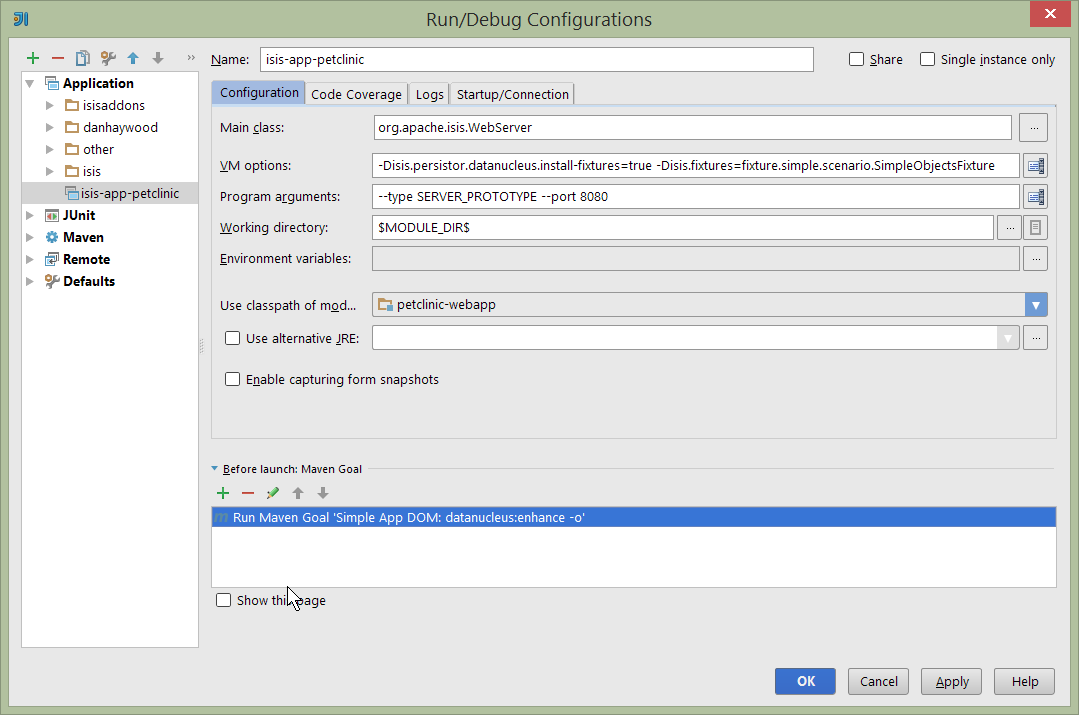 where the "before launch" maven goal (to run the DataNucleus enhancer) is defined as: