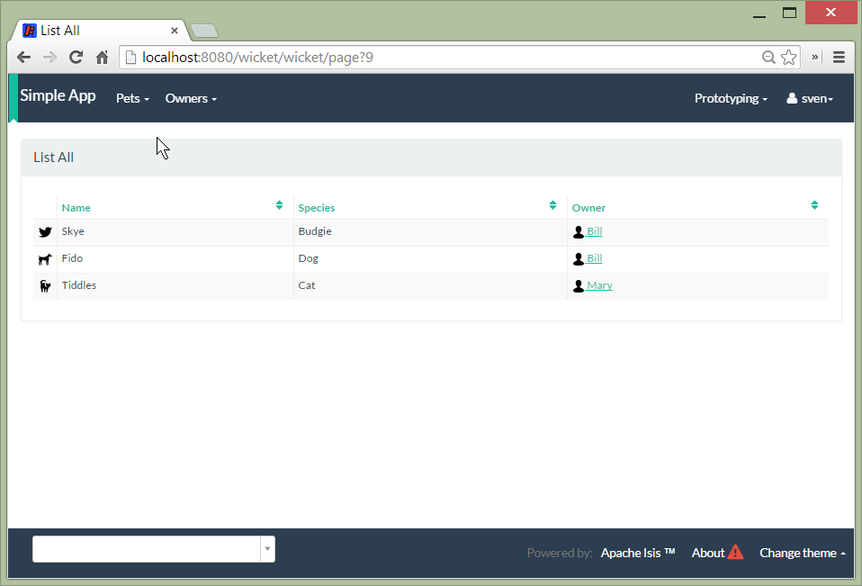 Apache Isis applications are organized into several Maven modules. Within your IDE navigate to the various classes and correlate back to the generated UI: