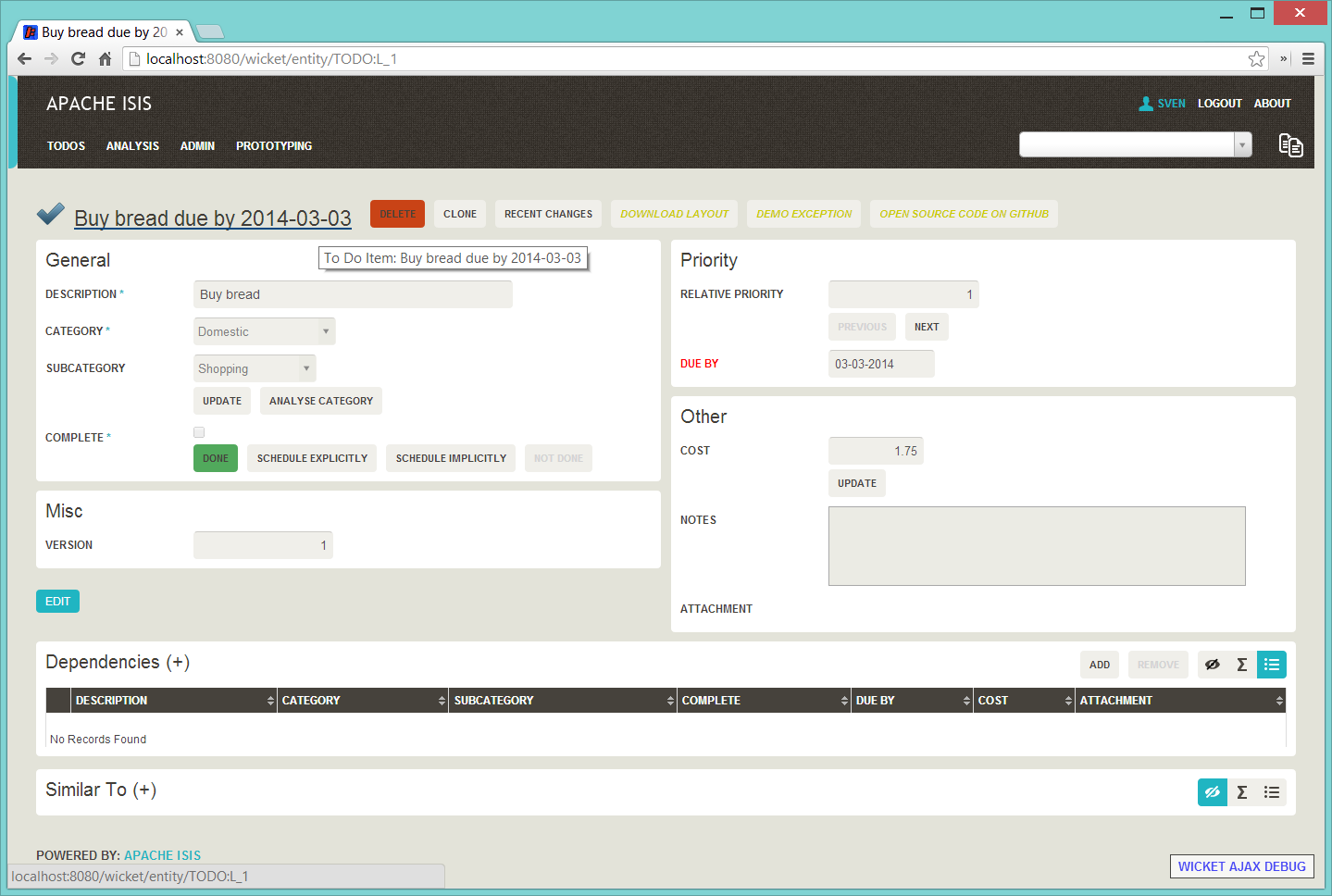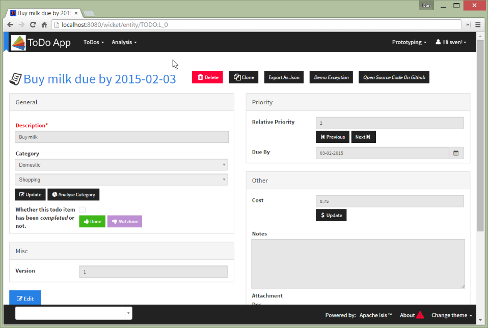 The following screenshots are taken from the Isis addons example todoapp (not ASF):